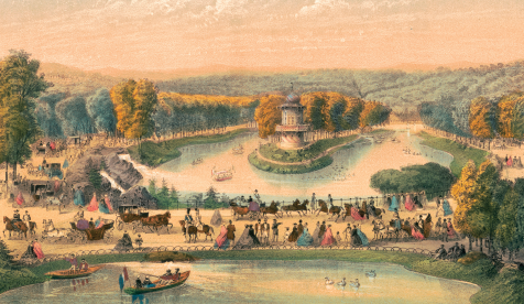 Pour les espaces verts, Haussmann s’appuie sur les compétences d’Adolphe Alphand, ingénieur des Ponts et Chaussées, qu’il nomme à la tête du nouveau service municipal des Promenades et Plantations. Ensemble, ils prévoient de nombreux parcs et jardins, notamment le parc Montsouris et celui des Buttes-Chaumont. Haussmann veut « des espaces verdoyants, dispensateurs de salubrité, défenseurs de la vie humaine que leur influence bienfaisante prolonge, offrant de surcroît des lieux de repos et de plaisance aux travailleurs et à leur famille » — les objectifs de santé et de paix sociale sont ici clairement affichés. Il demande à Alphand de faire aménager des squares dans chacun des 80 quartiers de Paris, et de créer, presque ex nihilo, les bois de Vincennes et de Boulogne. Le bois de Boulogne est ainsi le résultat de l’annexion de la plaine de Longchamp et du parc de Madrid à une propriété boisée cédée à la Ville par Napoléon III. Deux lacs sont aménagés, dont l’un déverse le trop-plein de ses eaux dans le second par une cascade. Pour leur donner une profondeur suffisante, on élève leur pourtour « au moyen des terres de déblai de leur lit, répandues en talus allongés, gazonnés et plantés. […] Le trop-plein devait alimenter des ruisseaux répandant la fraîcheur et la fertilité dans les parties les plus basses du Bois, dont l’aridité n’était pas le moindre défaut ». Environ 420 000 arbres de haute tige et arbustes en touffes, essences à feuilles caduques ou persistantes appropriées à la nature du terrain, constituent les premières plantations. Les coupes d’arbres pour produire du bois d’œuvre ou de chauffage sont abandonnées, transformant les taillis en futaies d’où seuls les arbres morts sont prélevés. Le Jardin zoologique d’acclimatation (1860) est installé pour accueillir des animaux exotiques et les acclimater à des fins agricoles, commerciales ou de loisir.