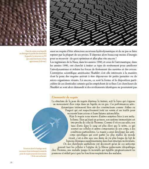 « Prenez vos leçons dans la nature ! », disait Léonard de Vinci. La science y trouve une source d’inspiration inépuisable pour développer des solutions nouvelles dans tous les domaines de notre vie. Ailes « solaires » du papillon Morpho, champignons dépollueurs de sols, bernacles à l’origine de colles chirurgicales biodégradables, pommes de pin comme modèles de bâtiments à isolation passive… Demain, des nez artificiels pourront nous soigner grâce aux odeurs, des cannes pour aveugles utiliseront l’écholocation des chauves-souris, des bactéries rendront possible notre installation sur Mars. Imitons le génie de la nature pour construire un monde plus durable et mieux adapté aux changements !