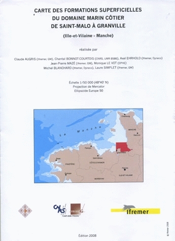 Carte des formations superficielles du domaine marin côtier de l'anse de Saint-Malo à Granville (Ille et vilaine - manche) Echelle 1/50 000